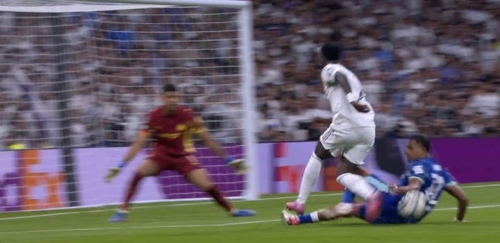 直播吧09月17日讯 皇马vs马赛第81分钟,梅迪纳手球送点!姆巴佩点射双响,皇马2-1领先!